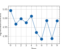>>> # Example plotting multiple values >>> import torch >>> from torchmetrics.audio import SignalDistortionRatio >>> metric = SignalDistortionRatio() >>> values = [ ] >>> for _ in range(10): ... values.append(metric(torch.rand(8000), torch.rand(8000))) >>> fig_, ax_ = metric.plot(values)