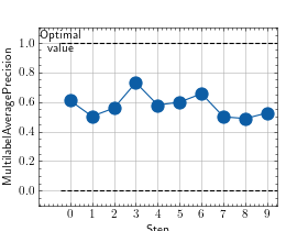 >>> # Example plotting multiple values >>> import torch >>> from torchmetrics.classification import MultilabelAveragePrecision >>> metric = MultilabelAveragePrecision(num_labels=3) >>> values = [ ] >>> for _ in range(10): ... values.append(metric(torch.rand(20,3), torch.randint(2, (20,3)))) >>> fig_, ax_ = metric.plot(values)