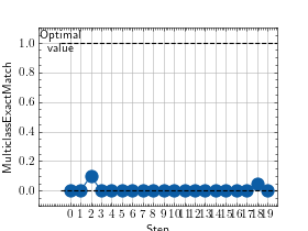 >>> # Example plotting multiple values >>> from torch import rand, randint >>> from torchmetrics.classification import MultilabelExactMatch >>> metric = MultilabelExactMatch(num_labels=3) >>> values = [ ] >>> for _ in range(10): ... values.append(metric(randint(2, (20, 3, 5)), randint(2, (20, 3, 5)))) >>> fig_, ax_ = metric.plot(values)
