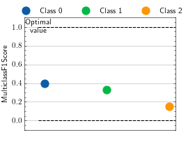 >>> from torch import randint >>> # Example plotting a single value per class >>> from torchmetrics.classification import MulticlassF1Score >>> metric = MulticlassF1Score(num_classes=3, average=None) >>> metric.update(randint(3, (20,)), randint(3, (20,))) >>> fig_, ax_ = metric.plot()