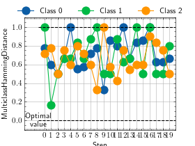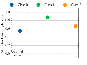 >>> # Example plotting a single value per class >>> from torch import randint >>> from torchmetrics.classification import MulticlassHammingDistance >>> metric = MulticlassHammingDistance(num_classes=3, average=None) >>> metric.update(randint(3, (20,)), randint(3, (20,))) >>> fig_, ax_ = metric.plot()