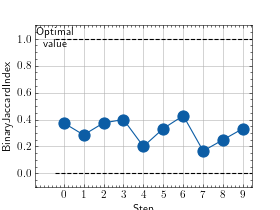 >>> # Example plotting multiple values >>> from torch import rand, randint >>> from torchmetrics.classification import BinaryJaccardIndex >>> metric = BinaryJaccardIndex() >>> values = [ ] >>> for _ in range(10): ... values.append(metric(rand(10), randint(2,(10,)))) >>> fig_, ax_ = metric.plot(values)