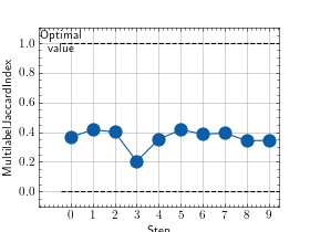 >>> # Example plotting multiple values >>> from torch import rand, randint >>> from torchmetrics.classification import MultilabelJaccardIndex >>> metric = MultilabelJaccardIndex(num_labels=3) >>> values = [ ] >>> for _ in range(10): ... values.append(metric(randint(2, (20, 3)), randint(2, (20, 3)))) >>> fig_, ax_ = metric.plot(values)