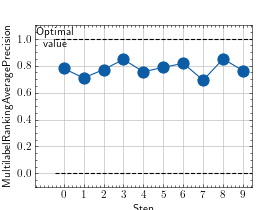 >>> from torch import rand, randint >>> # Example plotting multiple values >>> from torchmetrics.classification import MultilabelRankingAveragePrecision >>> metric = MultilabelRankingAveragePrecision(num_labels=3) >>> values = [ ] >>> for _ in range(10): ... values.append(metric(rand(20, 3), randint(2, (20, 3)))) >>> fig_, ax_ = metric.plot(values)