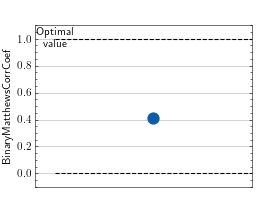 >>> from torch import rand, randint >>> # Example plotting a single value >>> from torchmetrics.classification import BinaryMatthewsCorrCoef >>> metric = BinaryMatthewsCorrCoef() >>> metric.update(rand(10), randint(2,(10,))) >>> fig_, ax_ = metric.plot()