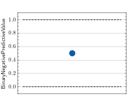 \[\text{Negative Predictive Value} = \frac{\text{TN}}{\text{TN} + \text{FP}}\]Where \(\text{TN}\) and \(\text{FP}\) represent the number of true negatives and false positives respectively. The metric is only proper defined when \(\text{TN} + \text{FP} \neq 0\). If this case is encountered a score of 0 is returned.