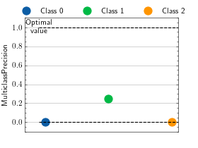 >>> from torch import randint >>> # Example plotting a single value per class >>> from torchmetrics.classification import MulticlassPrecision >>> metric = MulticlassPrecision(num_classes=3, average=None) >>> metric.update(randint(3, (20,)), randint(3, (20,))) >>> fig_, ax_ = metric.plot()