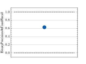 >>> from torch import rand, randint >>> # Example plotting a single value >>> from torchmetrics.classification import BinaryPrecisionAtFixedRecall >>> metric = BinaryPrecisionAtFixedRecall(min_recall=0.5) >>> metric.update(rand(10), randint(2,(10,))) >>> fig_, ax_ = metric.plot() # the returned plot only shows the maximum recall value by default