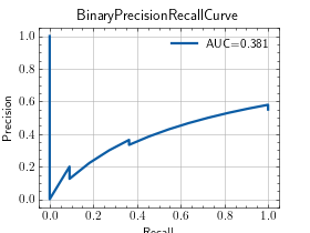 >>> from torch import rand, randint >>> from torchmetrics.classification import BinaryPrecisionRecallCurve >>> preds = rand(20) >>> target = randint(2, (20,)) >>> metric = BinaryPrecisionRecallCurve() >>> metric.update(preds, target) >>> fig_, ax_ = metric.plot(score=True)