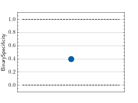 >>> from torch import rand, randint >>> # Example plotting a single value >>> from torchmetrics.classification import BinarySpecificity >>> metric = BinarySpecificity() >>> metric.update(rand(10), randint(2,(10,))) >>> fig_, ax_ = metric.plot()