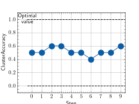 >>> # Example plotting multiple values >>> import torch >>> from torchmetrics.clustering import ClusterAccuracy >>> metric = ClusterAccuracy(num_classes=4) >>> values = [ ] >>> for _ in range(10): ... values.append(metric(torch.randint(0, 4, (10,)), torch.randint(0, 4, (10,)))) >>> fig_, ax_ = metric.plot(values)