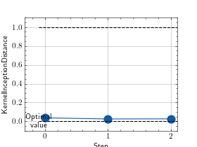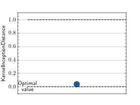 \[KID = MMD(f_{real}, f_{fake})^2\]where \(MMD\) is the maximum mean discrepancy and \(I_{real}, I_{fake}\) are extracted features from real and fake images, see kid ref1 for more details. In particular, calculating the MMD requires the evaluation of a polynomial kernel function \(k\)